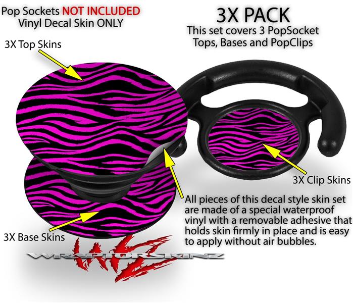 Decal Style Vinyl Skin Wrap 3 Pack for PopSockets Pink Zebra (POPSOCKET NOT INCLUDED)