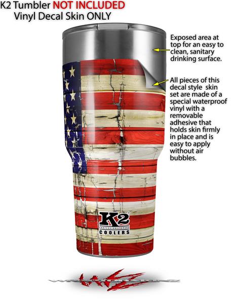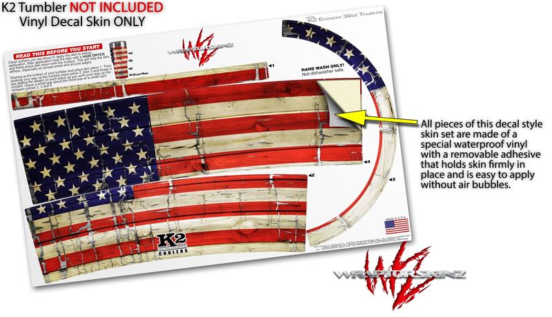 Skin Decal Wrap for K2 Element Tumbler 30oz - Painted Faded and Cracked USA American Flag (TUMBLER NOT INCLUDED) by WraptorSkinz