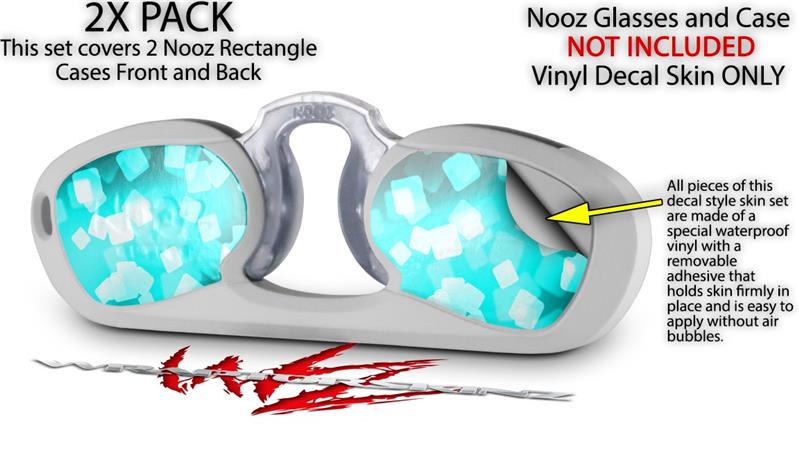 Decal Style Vinyl Skin Wrap 2 Pack for Nooz Glasses Rectangle Case Bokeh Squared Neon Teal (NOOZ NOT INCLUDED) by WraptorSkinz