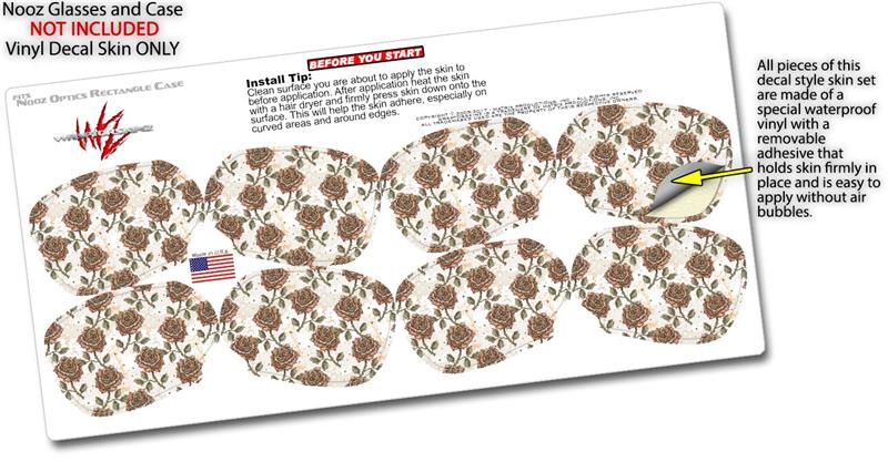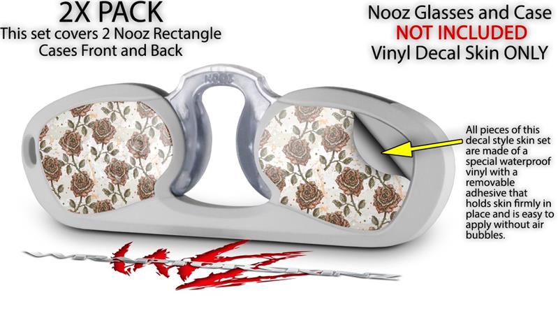 Decal Style Vinyl Skin Wrap 2 Pack for Nooz Glasses Rectangle Case Flowers Pattern Roses 20 (NOOZ NOT INCLUDED) by WraptorSkinz