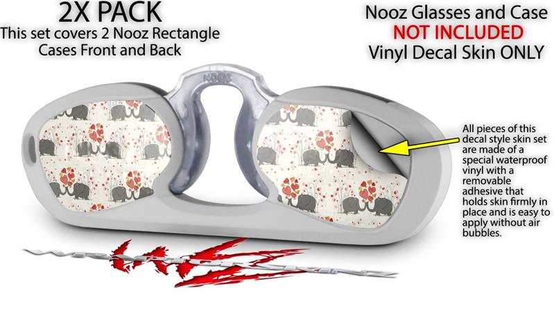 Decal Style Vinyl Skin Wrap 2 Pack for Nooz Glasses Rectangle Case Elephant Love (NOOZ NOT INCLUDED) by WraptorSkinz
