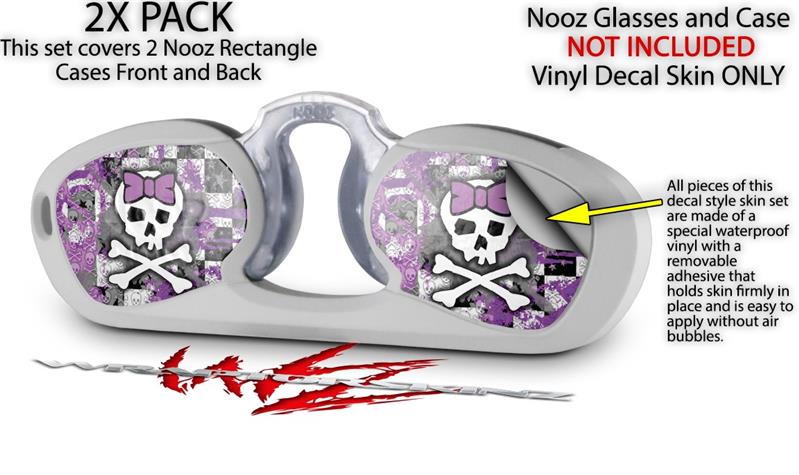 Decal Style Vinyl Skin Wrap 2 Pack for Nooz Glasses Rectangle Case Princess Skull Purple (NOOZ NOT INCLUDED) by WraptorSkinz