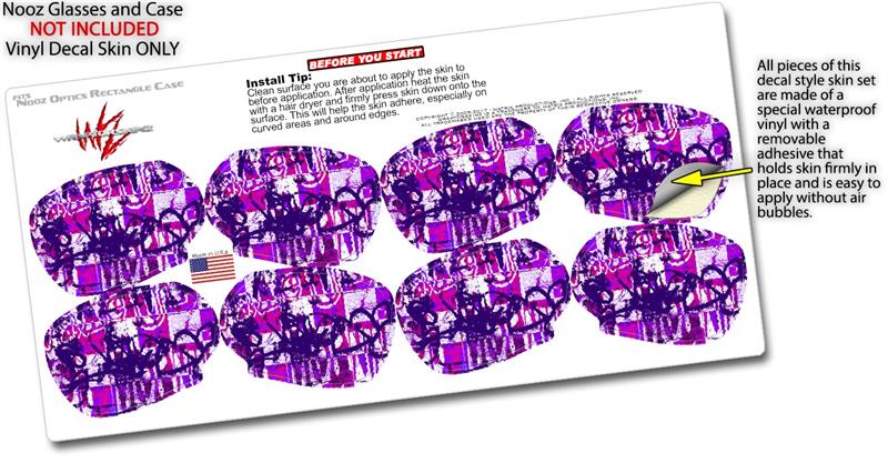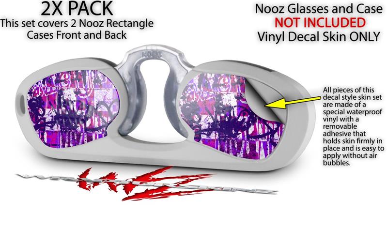 Decal Style Vinyl Skin Wrap 2 Pack for Nooz Glasses Rectangle Case Purple Checker Graffiti (NOOZ NOT INCLUDED) by WraptorSkinz