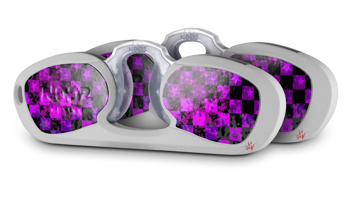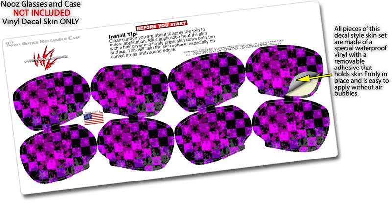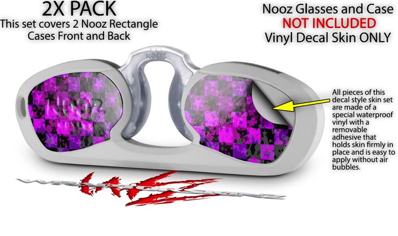 Decal Style Vinyl Skin Wrap 2 Pack for Nooz Glasses Rectangle Case Purple Star Checkerboard (NOOZ NOT INCLUDED) by WraptorSkinz