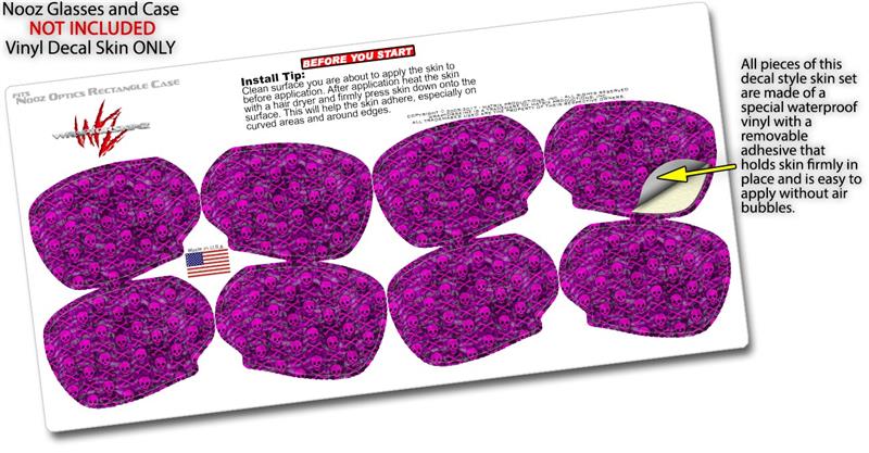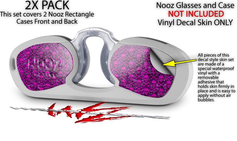 Decal Style Vinyl Skin Wrap 2 Pack for Nooz Glasses Rectangle Case Pink Skull Bones (NOOZ NOT INCLUDED) by WraptorSkinz