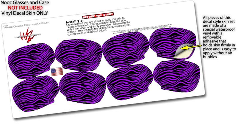 Decal Style Vinyl Skin Wrap 2 Pack for Nooz Glasses Rectangle Case Purple Zebra (NOOZ NOT INCLUDED) by WraptorSkinz