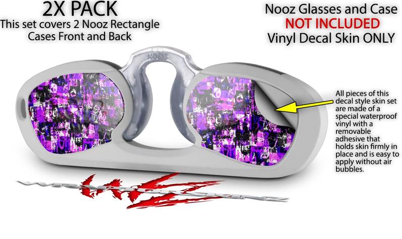 Decal Style Vinyl Skin Wrap 2 Pack for Nooz Glasses Rectangle Case Purple Graffiti (NOOZ NOT INCLUDED) by WraptorSkinz