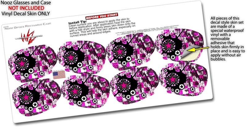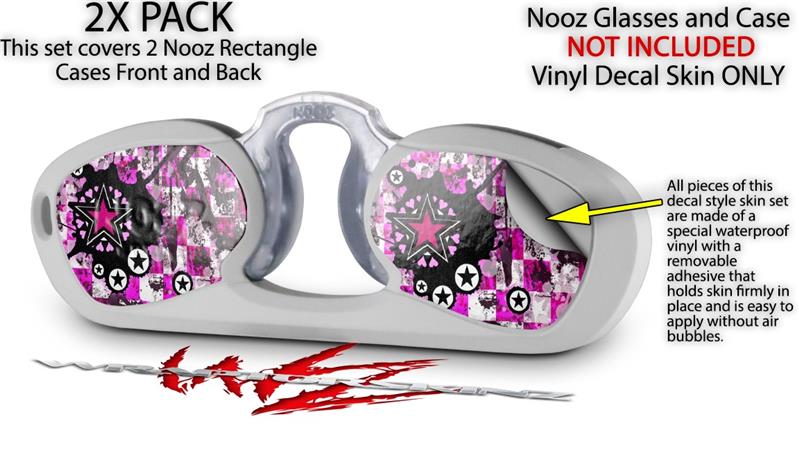 Decal Style Vinyl Skin Wrap 2 Pack for Nooz Glasses Rectangle Case Pink Star Splatter (NOOZ NOT INCLUDED) by WraptorSkinz