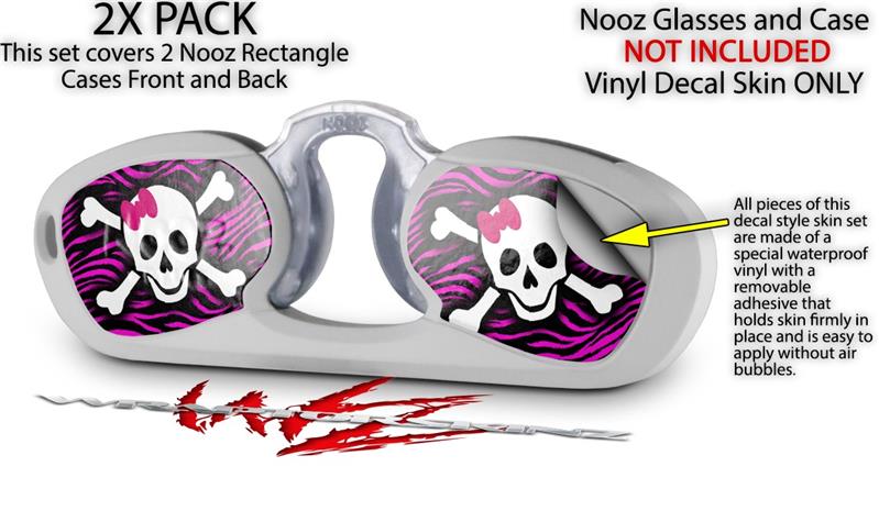 Decal Style Vinyl Skin Wrap 2 Pack for Nooz Glasses Rectangle Case Pink Zebra Skull (NOOZ NOT INCLUDED) by WraptorSkinz