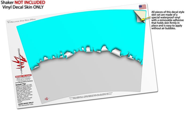 Skin Wrap Decal for IceShaker 2nd Gen 26oz Ripped Colors Neon Teal Gray (SHAKER NOT INCLUDED)