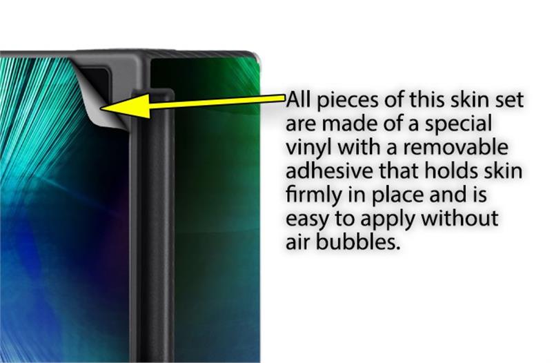WraptorSkinz® skins are superb photo quality designs and vibrant colors printed with special Eco-Friendly, fade resistant inks. Our skins are self-adhering flexible vinyl skins that helps prevent scratches. Made of composite, multi-layered commercial grade materials. The bottom layer is made with a special removable adhesive that is easily positioned and applied without air bubbles. We print your design on the bottom layer then bond a professional grade laminate over the entire skin adding a glossy protective finish.