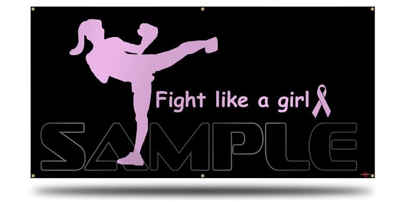 Fight Like A Girl Breast Cancer Kick Boxer Garage Decor Shop Banner 36"x72"