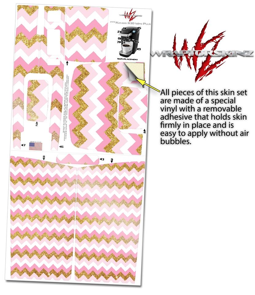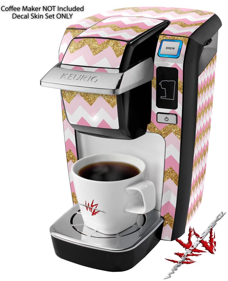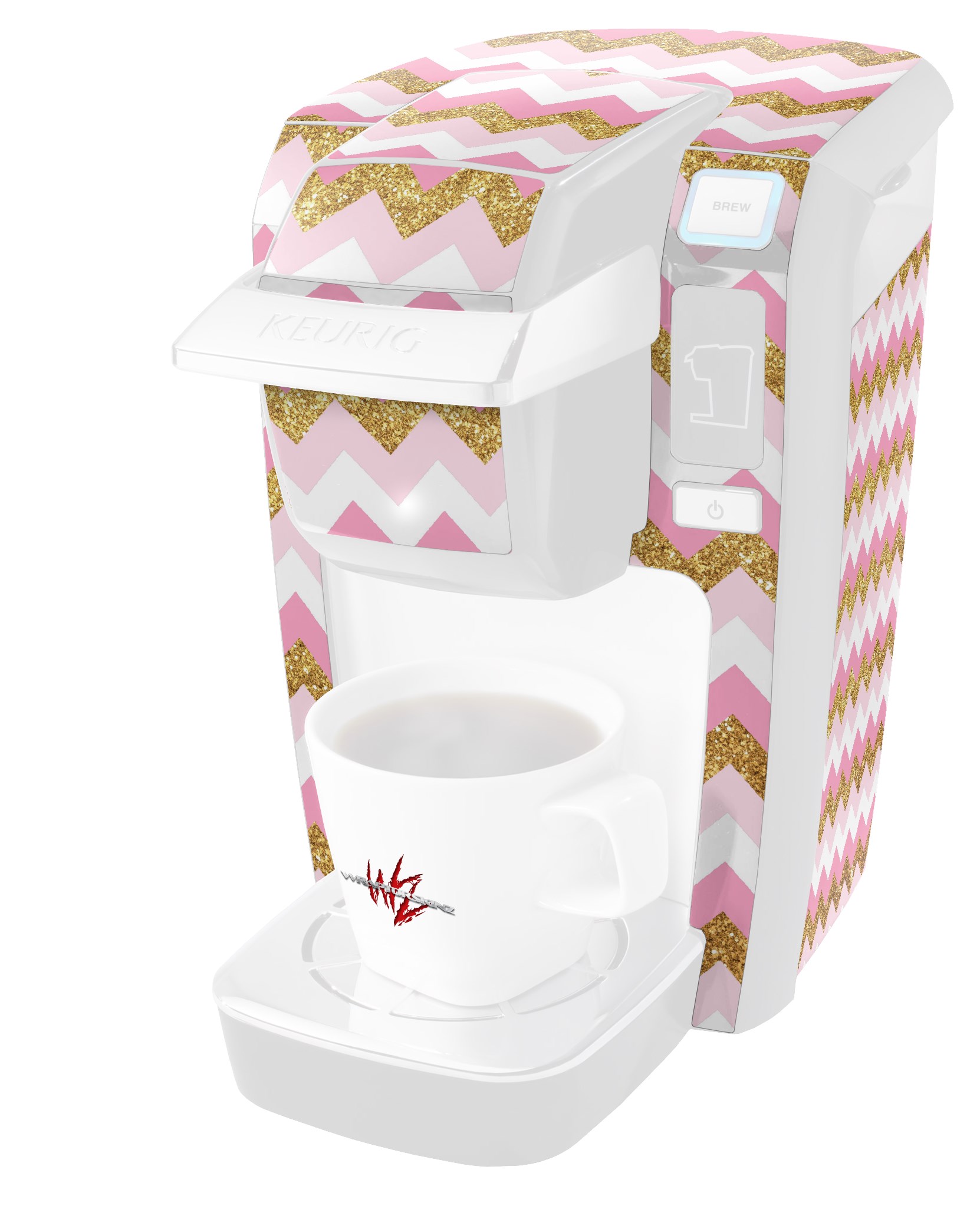 Decal Style Vinyl Skin compatible with Keurig K10 / K15 Mini Plus Coffee Makers Pink and White Chevron (KEURIG NOT INCLUDED)