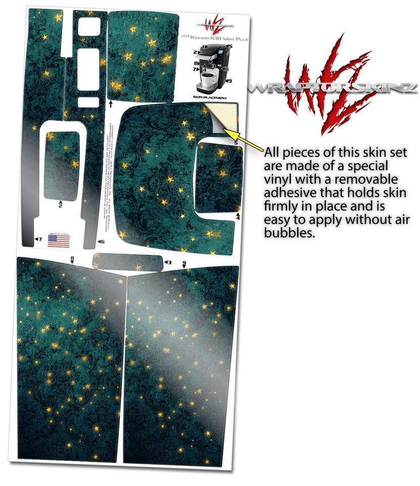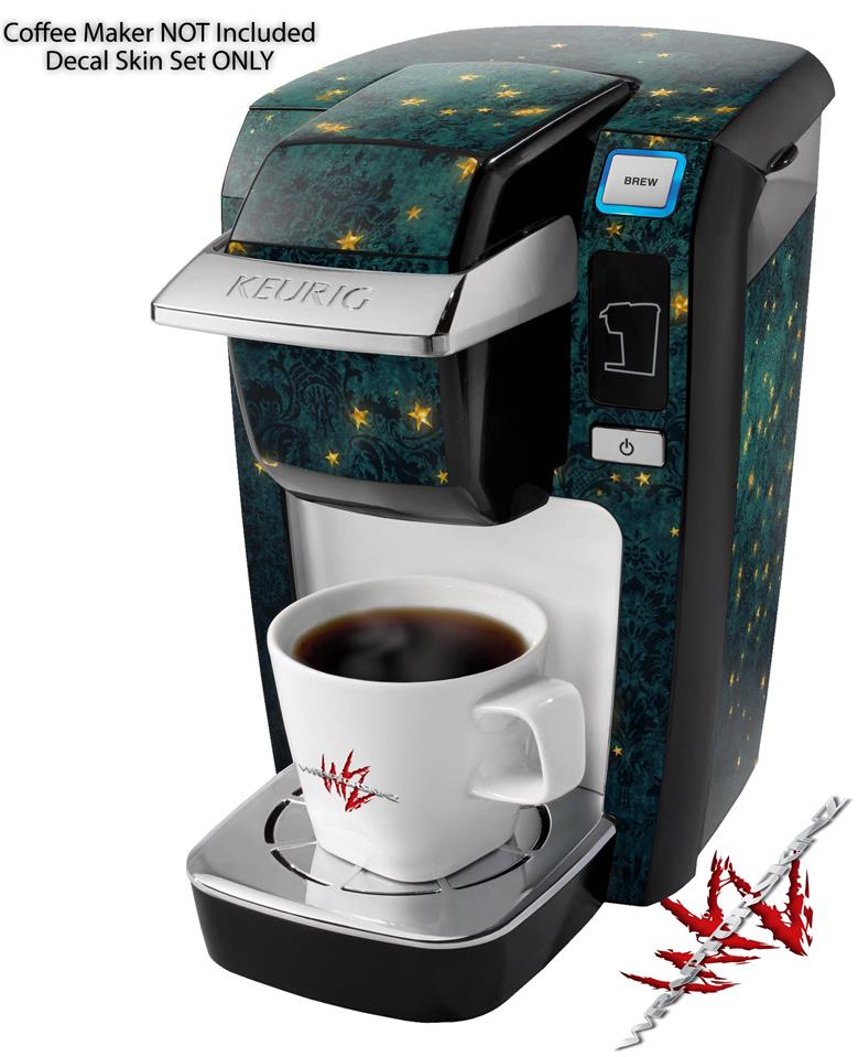 Decal Style Vinyl Skin compatible with Keurig K10 / K15 Mini Plus Coffee Makers Green Starry Night (KEURIG NOT INCLUDED)