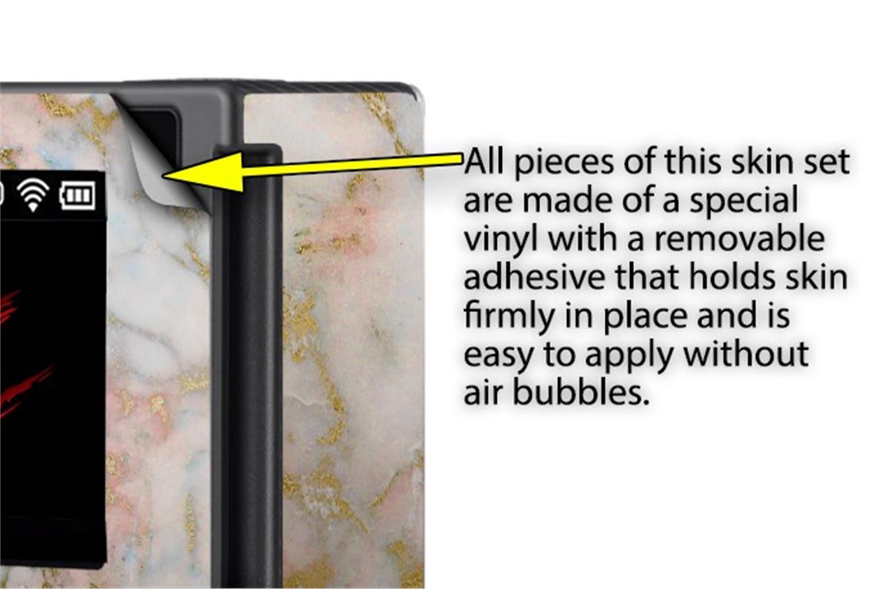WraptorSkinz® skins are superb photo quality designs and vibrant colors printed with special Eco-Friendly, fade resistant inks. Our skins are self-adhering flexible vinyl skins that helps prevent scratches. Made of composite, multi-layered commercial grade materials. The bottom layer is made with a special removable adhesive that is easily positioned and applied without air bubbles. We print your design on the bottom layer then bond a professional grade laminate over the entire skin adding a glossy protective finish.