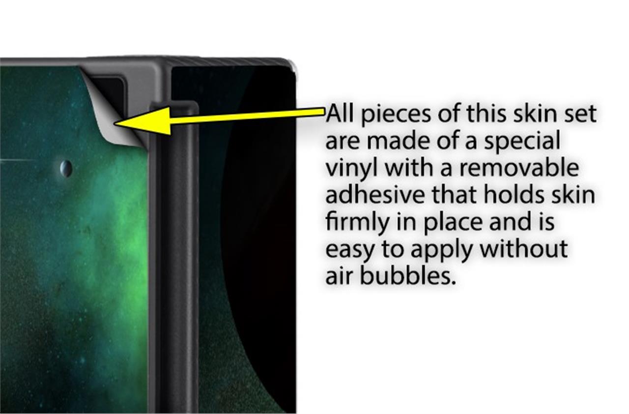 WraptorSkinz® skins are superb photo quality designs and vibrant colors printed with special Eco-Friendly, fade resistant inks. Our skins are self-adhering flexible vinyl skins that helps prevent scratches. Made of composite, multi-layered commercial grade materials. The bottom layer is made with a special removable adhesive that is easily positioned and applied without air bubbles. We print your design on the bottom layer then bond a professional grade laminate over the entire skin adding a glossy protective finish.