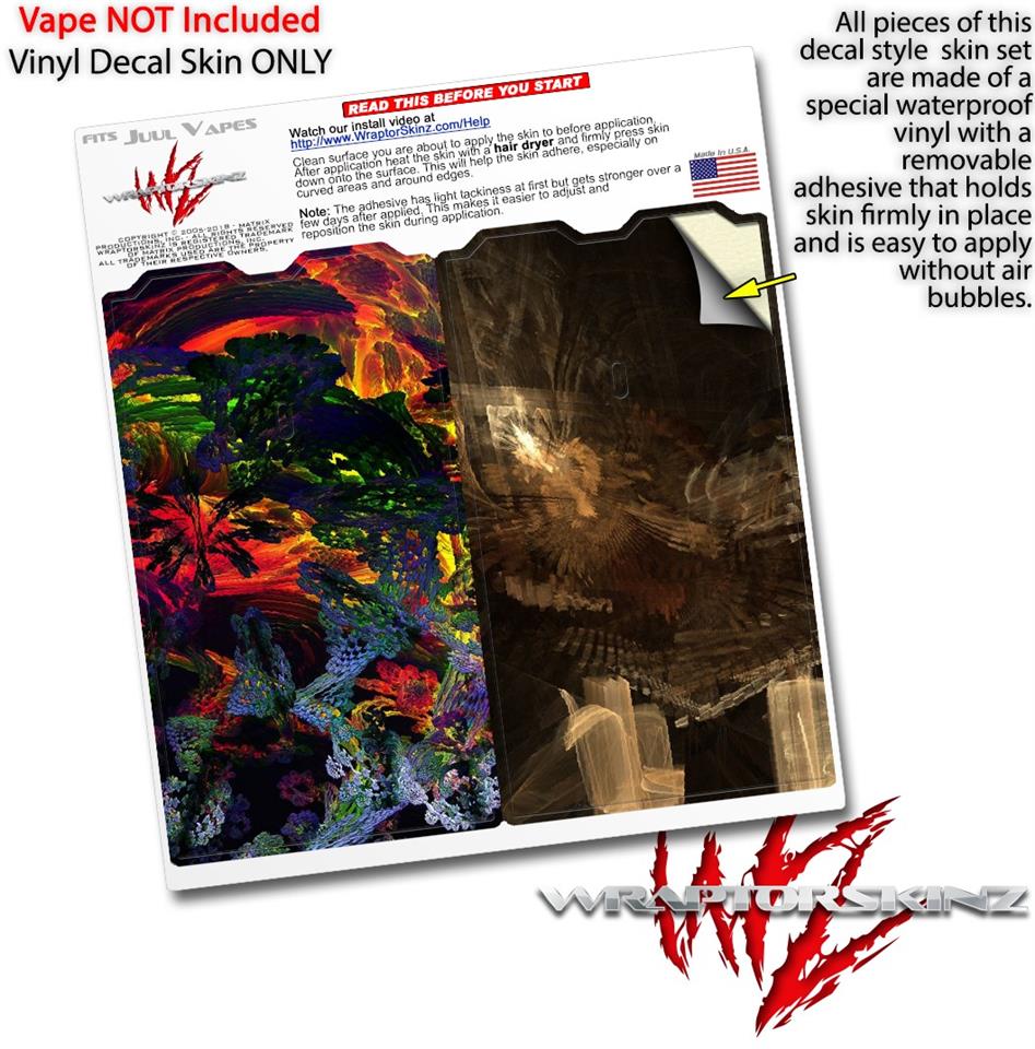 WraptorSkinz® skin wraps are printed using superb photo quality designs and vibrant colors printed with special fade resistant inks that last even in direct sun for years. WraptorSkinz are a composite of two layers of commercial grade materials. The bottom layer is a soft, flexible vinyl with a special removable adhesive that is easily positioned, applied without air bubbles. Next we print the bottom layer with UV protected, fade resistant inks that deliver superb photo quality designs in vibrant colors. Finally we bond a professional grade laminate over the entire skin adding a glossy protective finish. This product is not affiliated with or endorsed by the Juul brand.