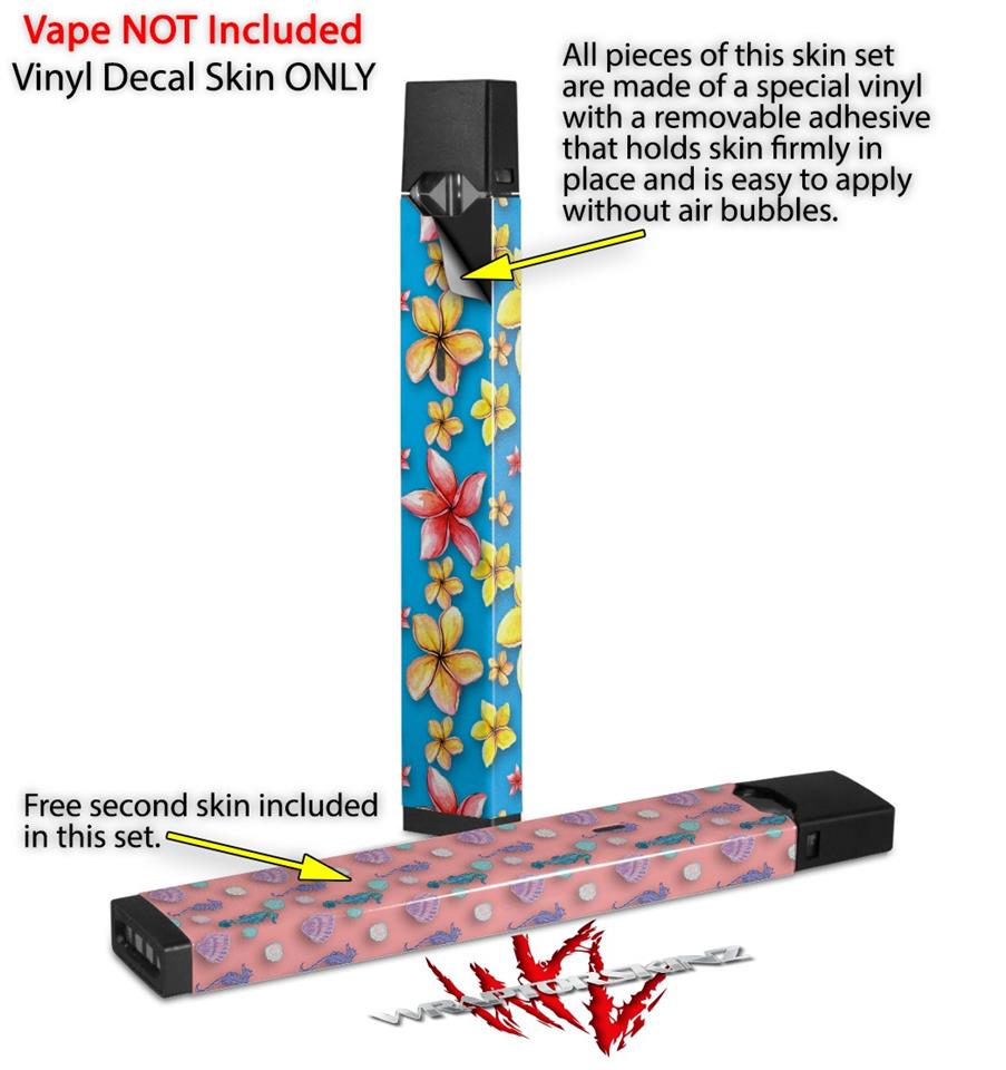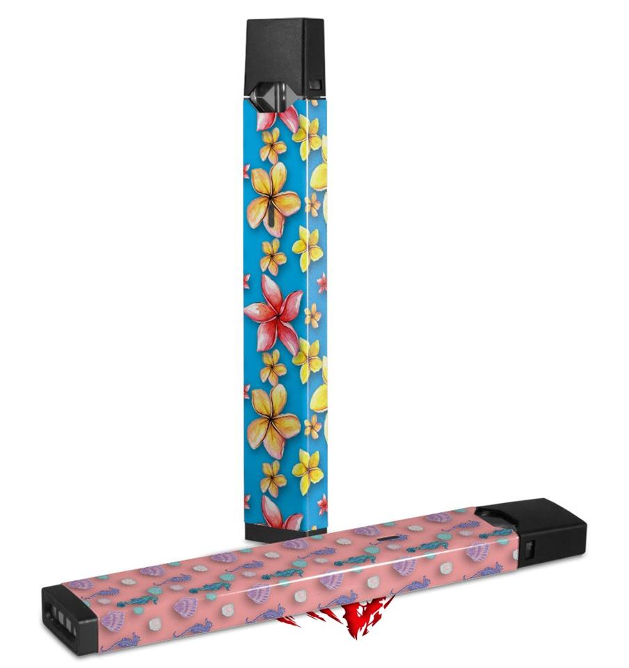 Skin Decal Wrap 2 Pack for Juul Vapes Beach Flowers Blue Medium JUUL NOT INCLUDED