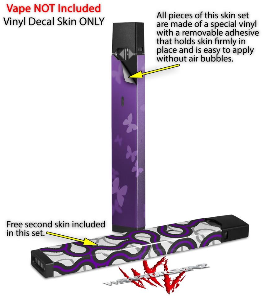 Skin Decal Wrap 2 Pack for Juul Vapes Bokeh Butterflies Purple JUUL NOT INCLUDED