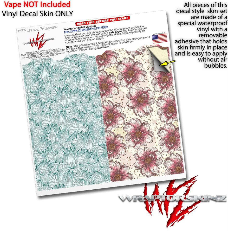 Skin Decal Wrap 2 Pack for Juul Vapes Flowers Pattern 09 JUUL NOT INCLUDED