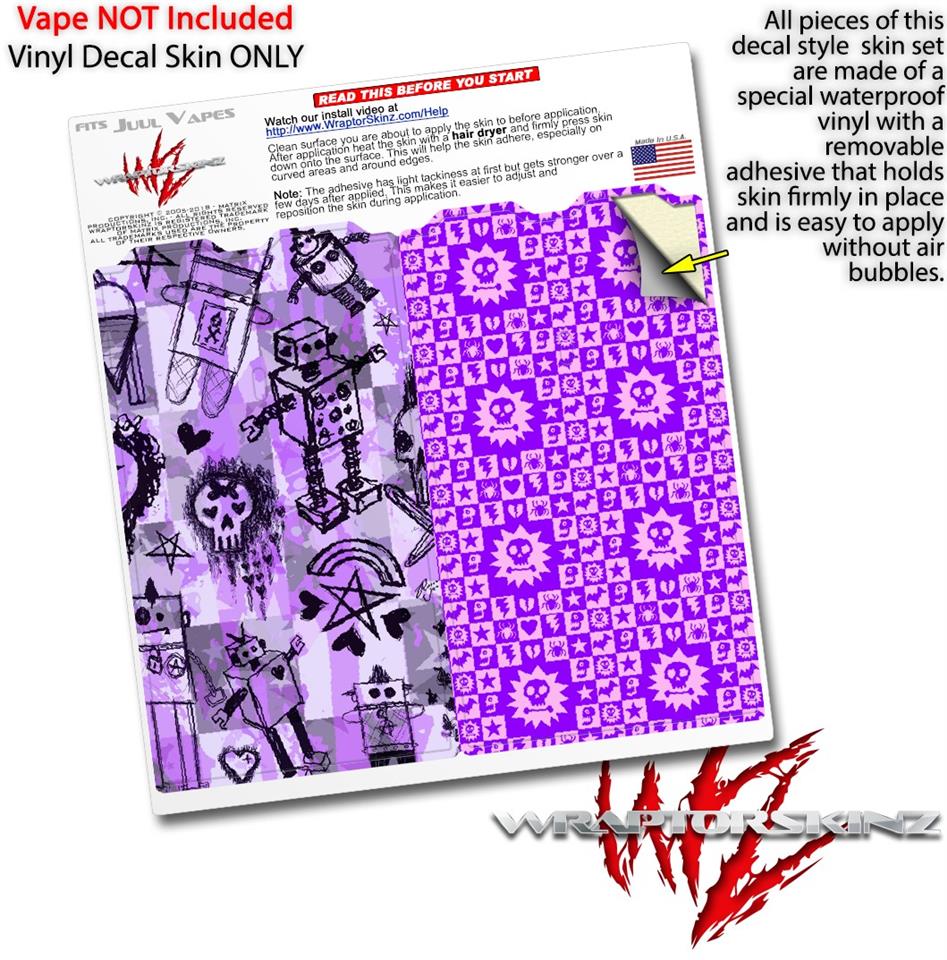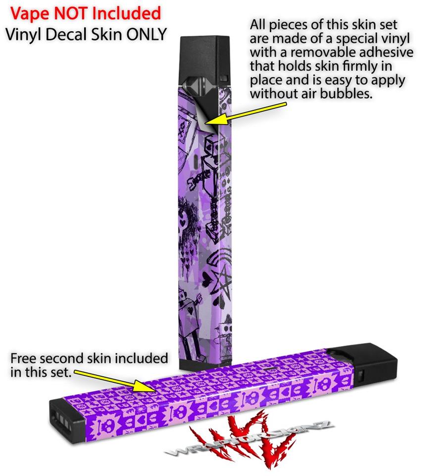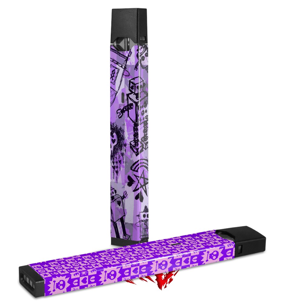 Skin Decal Wrap 2 Pack for Juul Vapes Scene Kid Sketches Purple JUUL NOT INCLUDED