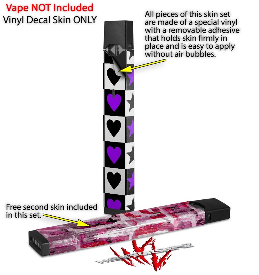 Skin Decal Wrap 2 Pack for Juul Vapes Purple Hearts And Stars JUUL NOT INCLUDED