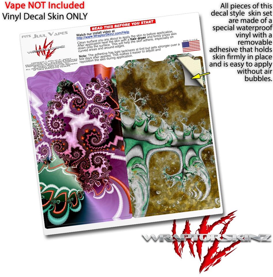 WraptorSkinz® skin wraps are printed using superb photo quality designs and vibrant colors printed with special fade resistant inks that last even in direct sun for years. WraptorSkinz are a composite of two layers of commercial grade materials. The bottom layer is a soft, flexible vinyl with a special removable adhesive that is easily positioned, applied without air bubbles. Next we print the bottom layer with UV protected, fade resistant inks that deliver superb photo quality designs in vibrant colors. Finally we bond a professional grade laminate over the entire skin adding a glossy protective finish. This product is not affiliated with or endorsed by the Juul brand.