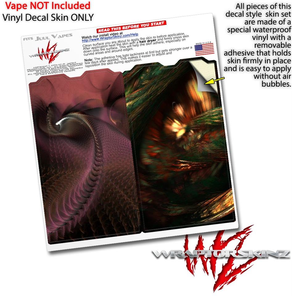 WraptorSkinz® skin wraps are printed using superb photo quality designs and vibrant colors printed with special fade resistant inks that last even in direct sun for years. WraptorSkinz are a composite of two layers of commercial grade materials. The bottom layer is a soft, flexible vinyl with a special removable adhesive that is easily positioned, applied without air bubbles. Next we print the bottom layer with UV protected, fade resistant inks that deliver superb photo quality designs in vibrant colors. Finally we bond a professional grade laminate over the entire skin adding a glossy protective finish. This product is not affiliated with or endorsed by the Juul brand.