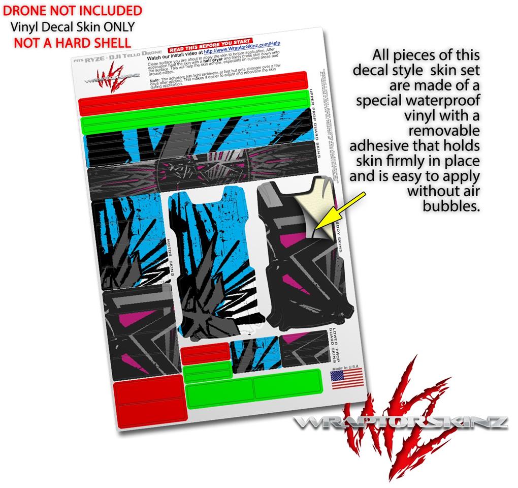 WraptorSkinz® skin wraps are printed using superb photo quality designs and vibrant colors printed with special fade resistant inks that last even in direct sun for years. WraptorSkinz are a composite of two layers of commercial grade materials. The bottom layer is a soft, flexible vinyl with a special removable adhesive that is easily positioned, applied without air bubbles. Next we print the bottom layer with UV protected, fade resistant inks that deliver superb photo quality designs in vibrant colors. Finally we bond a professional grade laminate over the entire skin adding a glossy protective finish. This product is not affiliated with or endorsed by the Ryze or DJI brand.