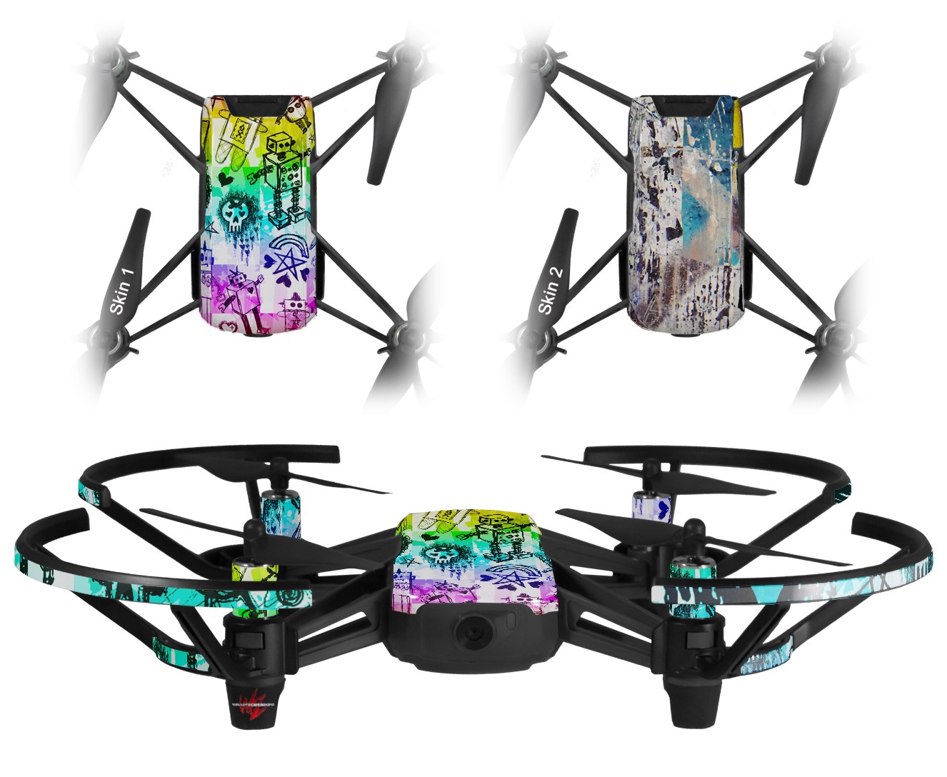 WraptorSkinz® skin wraps are printed using superb photo quality designs and vibrant colors printed with special fade resistant inks that last even in direct sun for years. WraptorSkinz are a composite of two layers of commercial grade materials. The bottom layer is a soft, flexible vinyl with a special removable adhesive that is easily positioned, applied without air bubbles. Next we print the bottom layer with UV protected, fade resistant inks that deliver superb photo quality designs in vibrant colors. Finally we bond a professional grade laminate over the entire skin adding a glossy protective finish. This product is not affiliated with or endorsed by the Ryze or DJI brand.