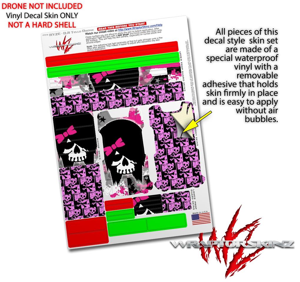 Skin Decal Wrap 2 Pack for DJI Ryze Tello Drone Scene Kid Girl Skull DRONE NOT INCLUDED