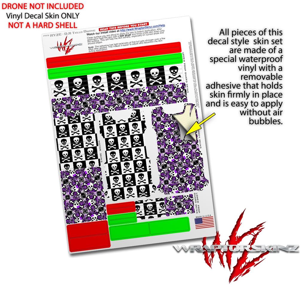 Skin Decal Wrap 2 Pack for DJI Ryze Tello Drone Skull Checkerboard DRONE NOT INCLUDED