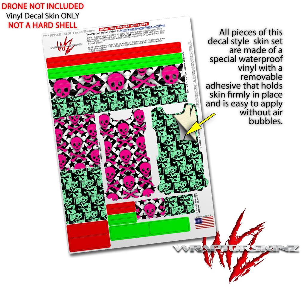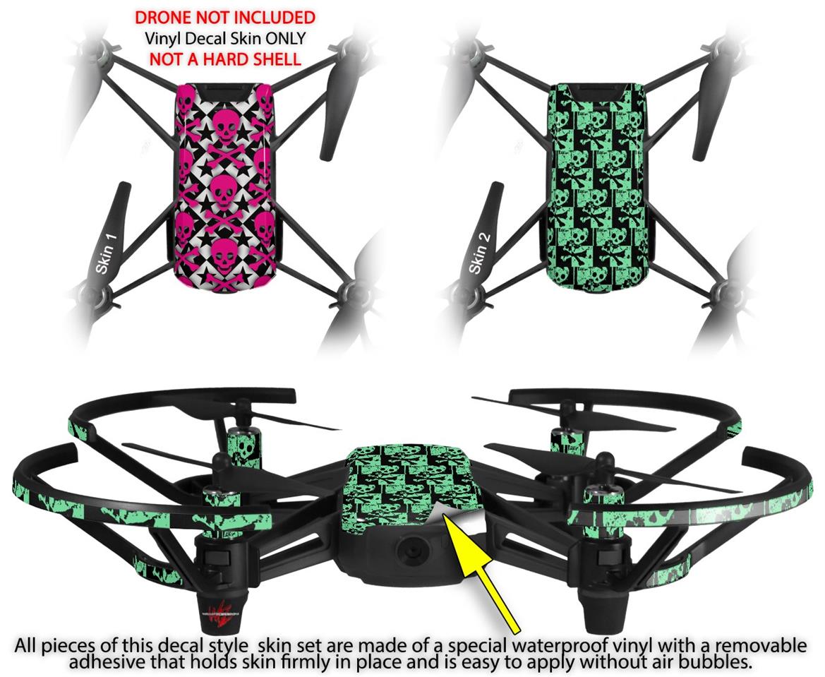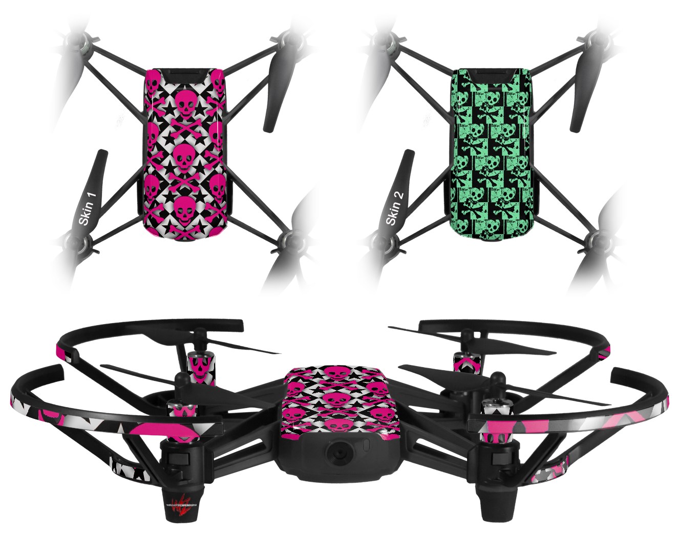 Skin Decal Wrap 2 Pack for DJI Ryze Tello Drone Pink Skulls and Stars DRONE NOT INCLUDED