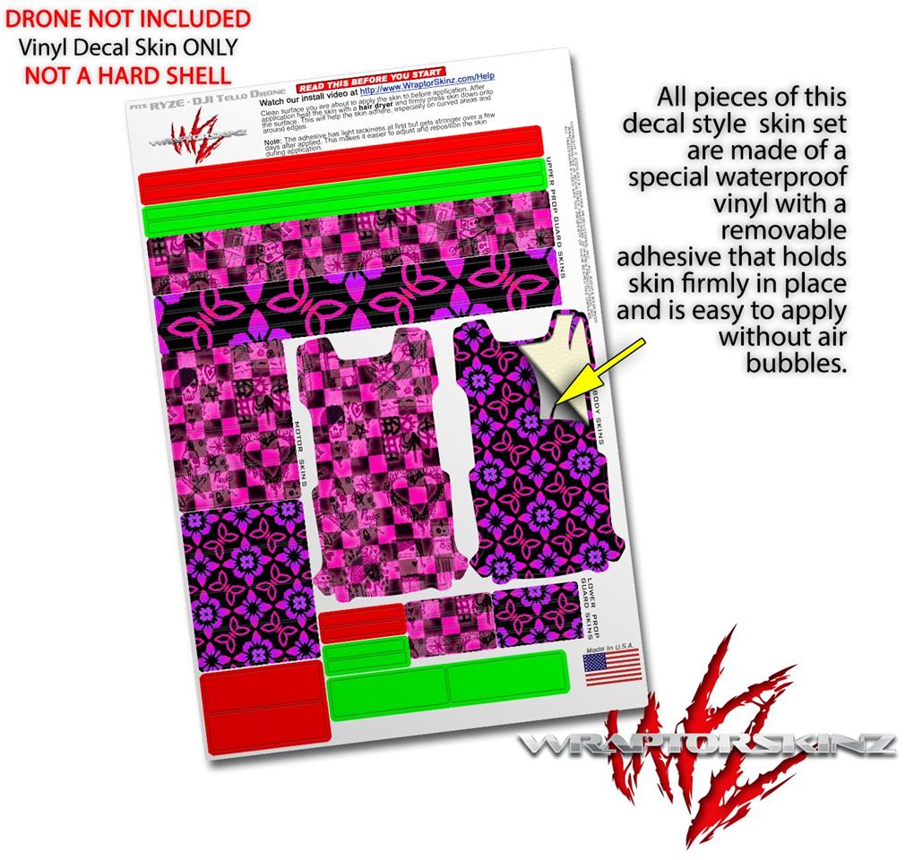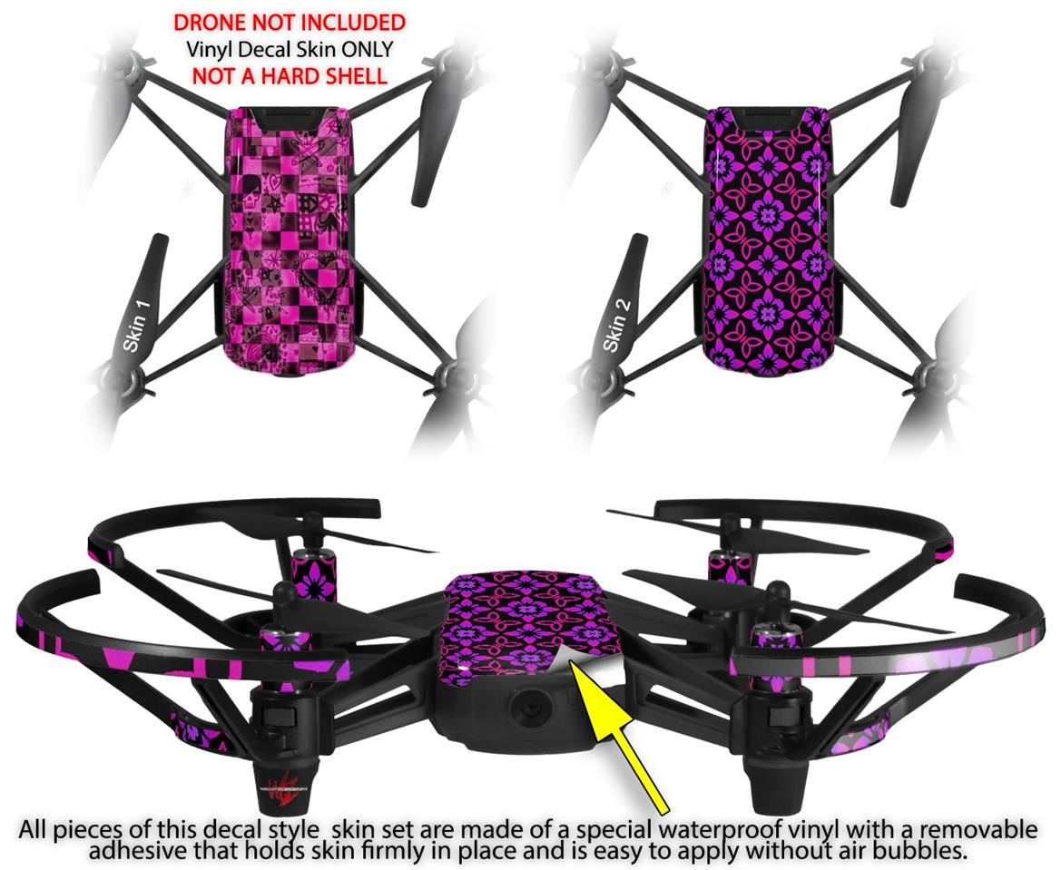 Skin Decal Wrap 2 Pack for DJI Ryze Tello Drone Pink Checkerboard Sketches DRONE NOT INCLUDED