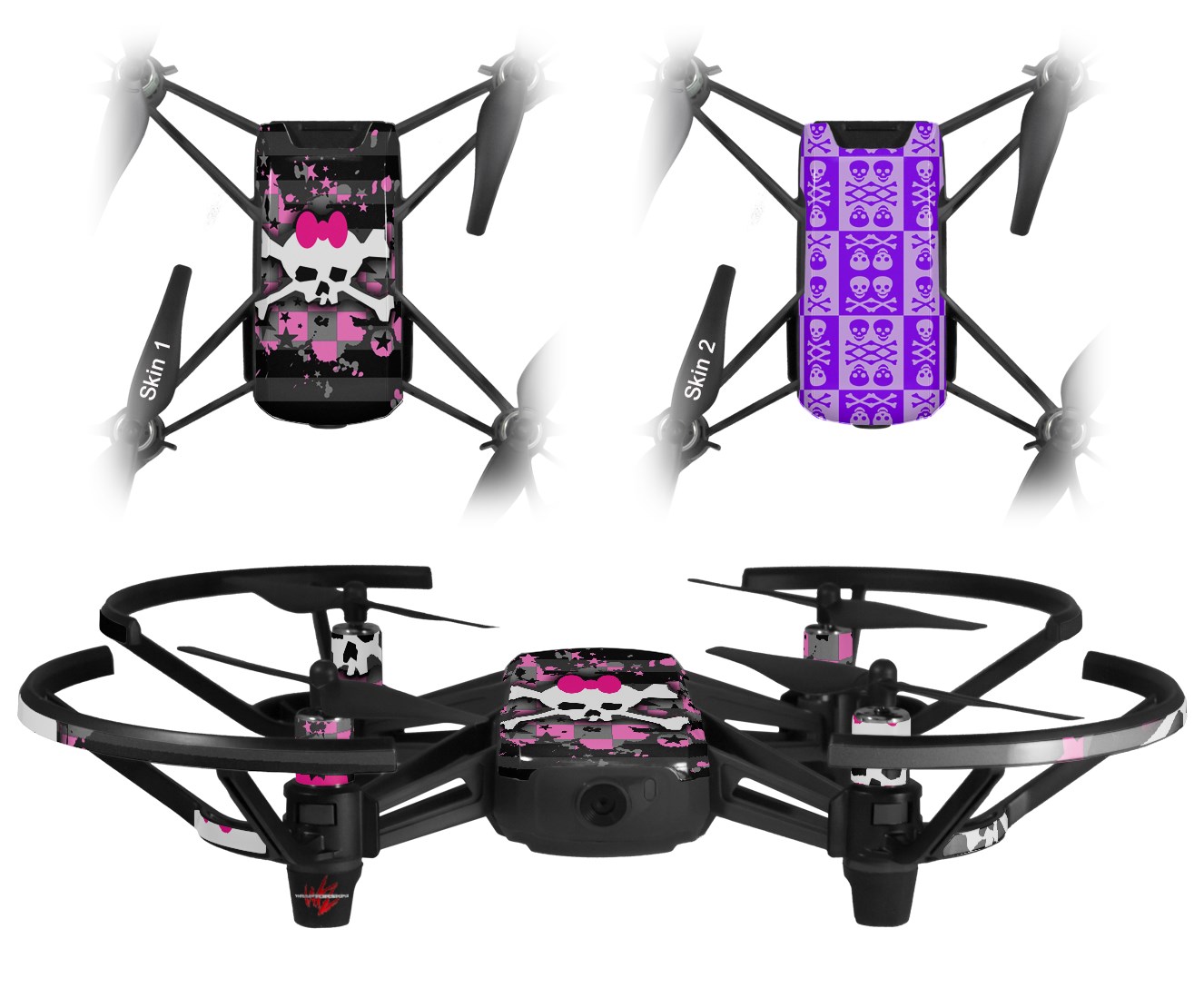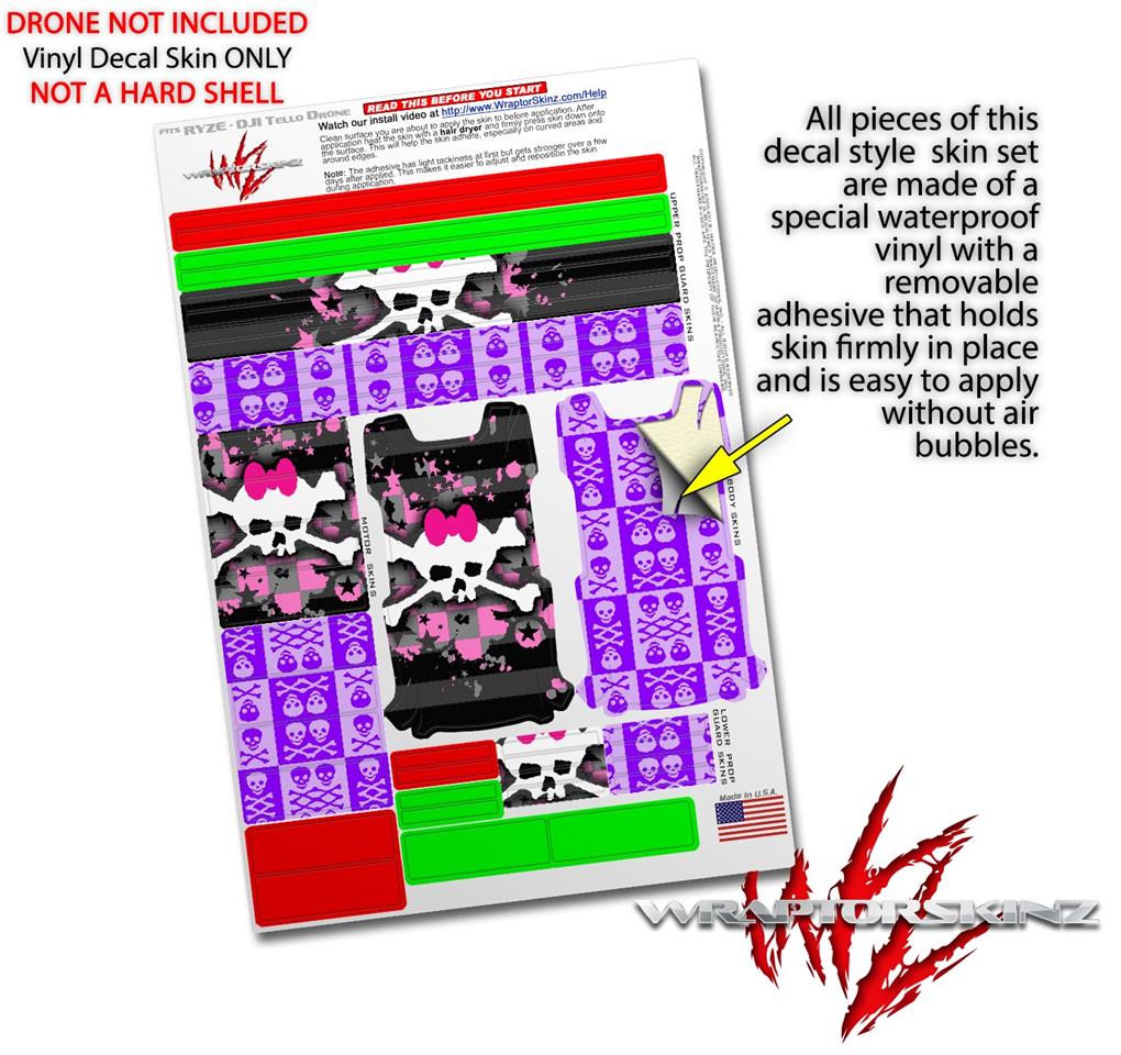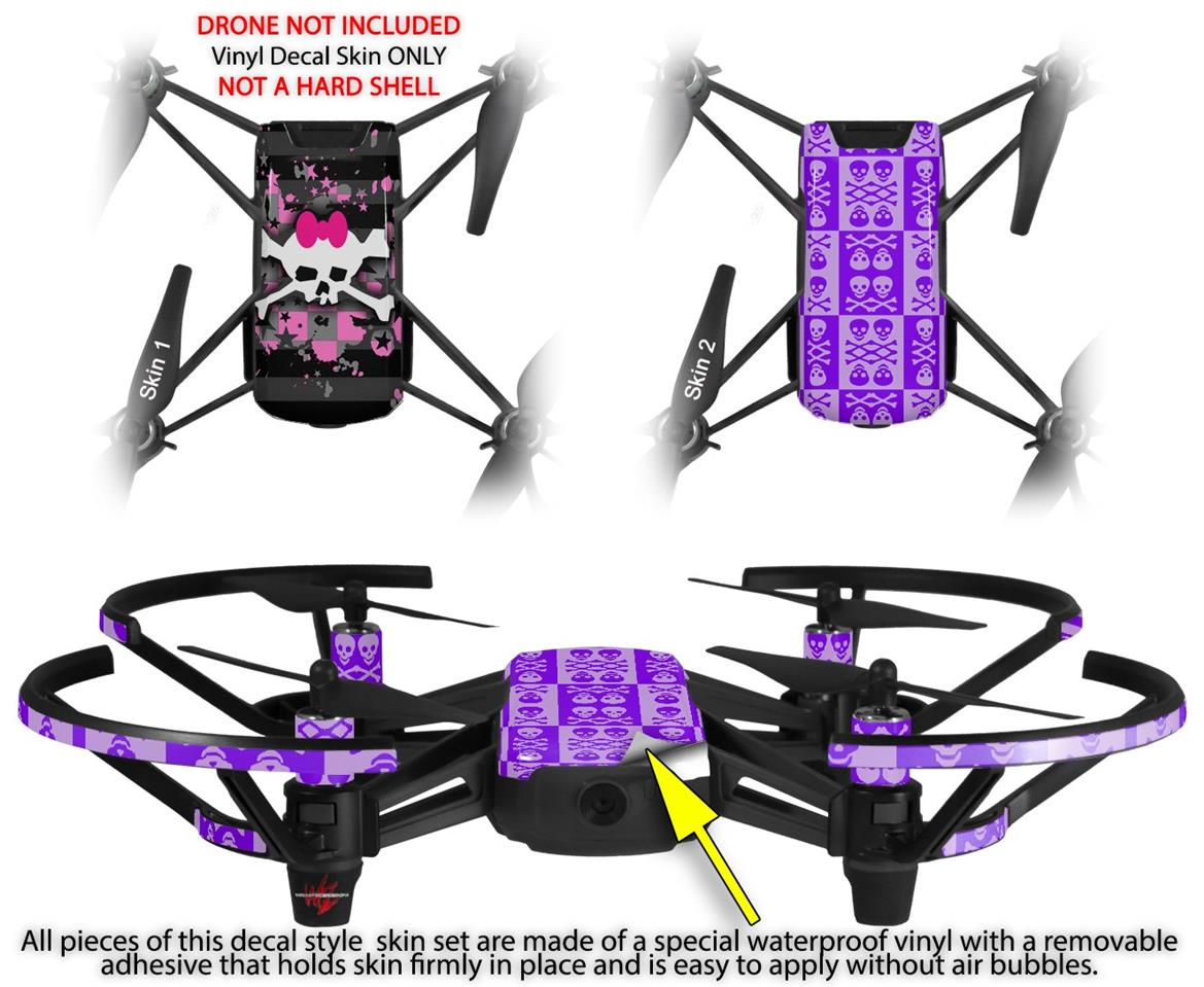 Skin Decal Wrap 2 Pack for DJI Ryze Tello Drone Pink Bow Skull DRONE NOT INCLUDED