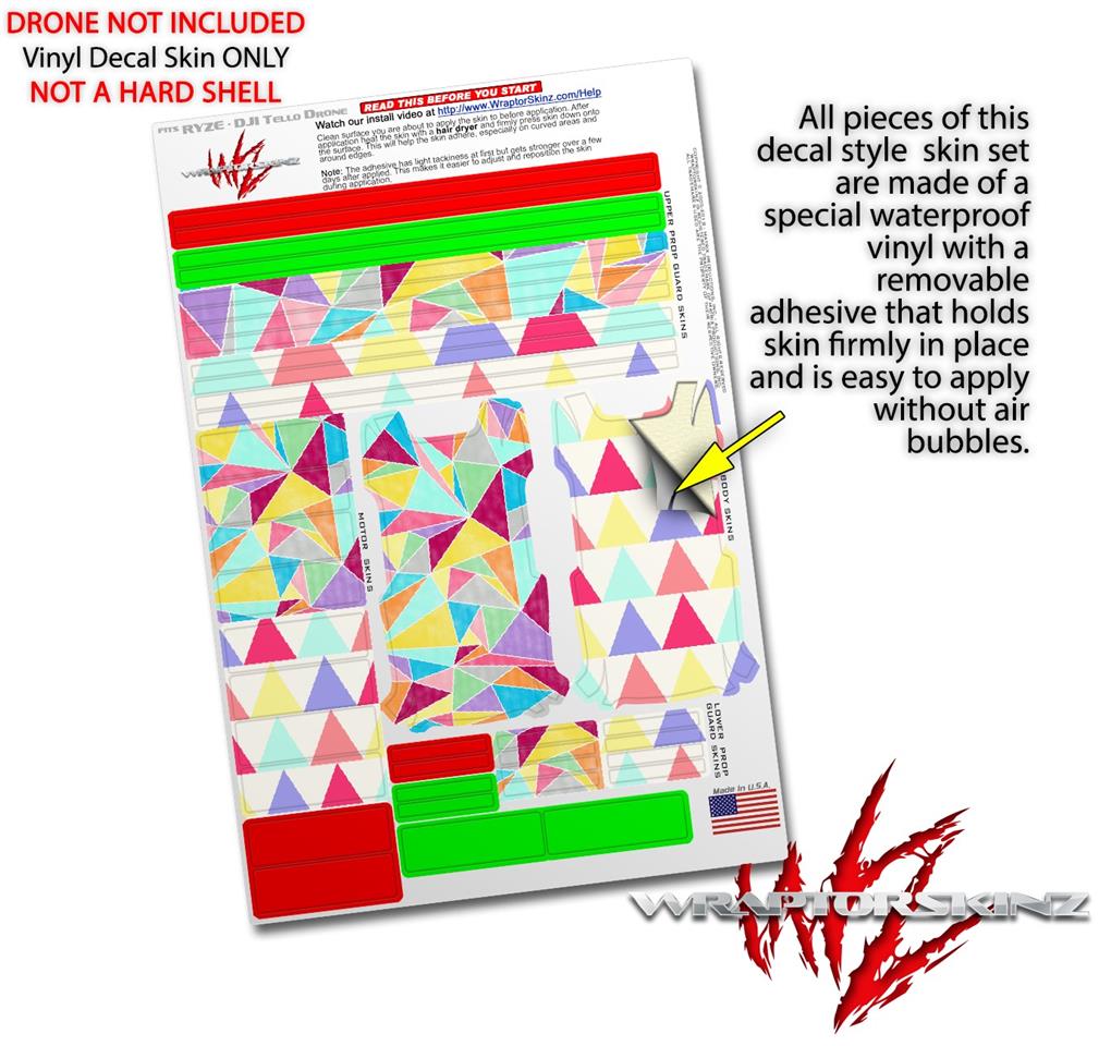 WraptorSkinz® skin wraps are printed using superb photo quality designs and vibrant colors printed with special fade resistant inks that last even in direct sun for years. WraptorSkinz are a composite of two layers of commercial grade materials. The bottom layer is a soft, flexible vinyl with a special removable adhesive that is easily positioned, applied without air bubbles. Next we print the bottom layer with UV protected, fade resistant inks that deliver superb photo quality designs in vibrant colors. Finally we bond a professional grade laminate over the entire skin adding a glossy protective finish. This product is not affiliated with or endorsed by the Ryze or DJI brand.