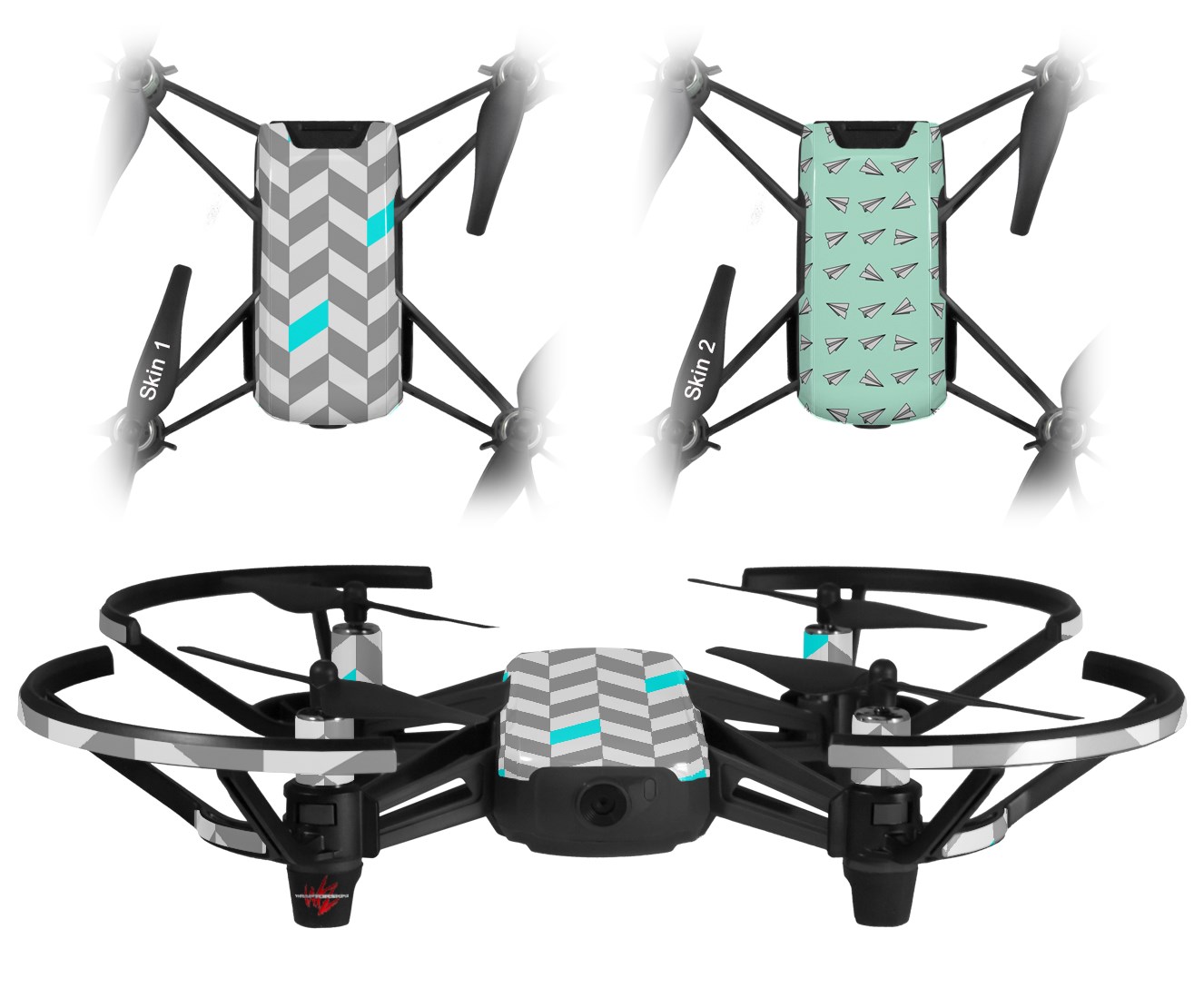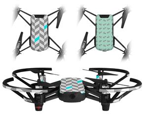 Skin Decal Wrap 2 Pack for DJI Ryze Tello Drone Chevrons Gray And Aqua DRONE NOT INCLUDED