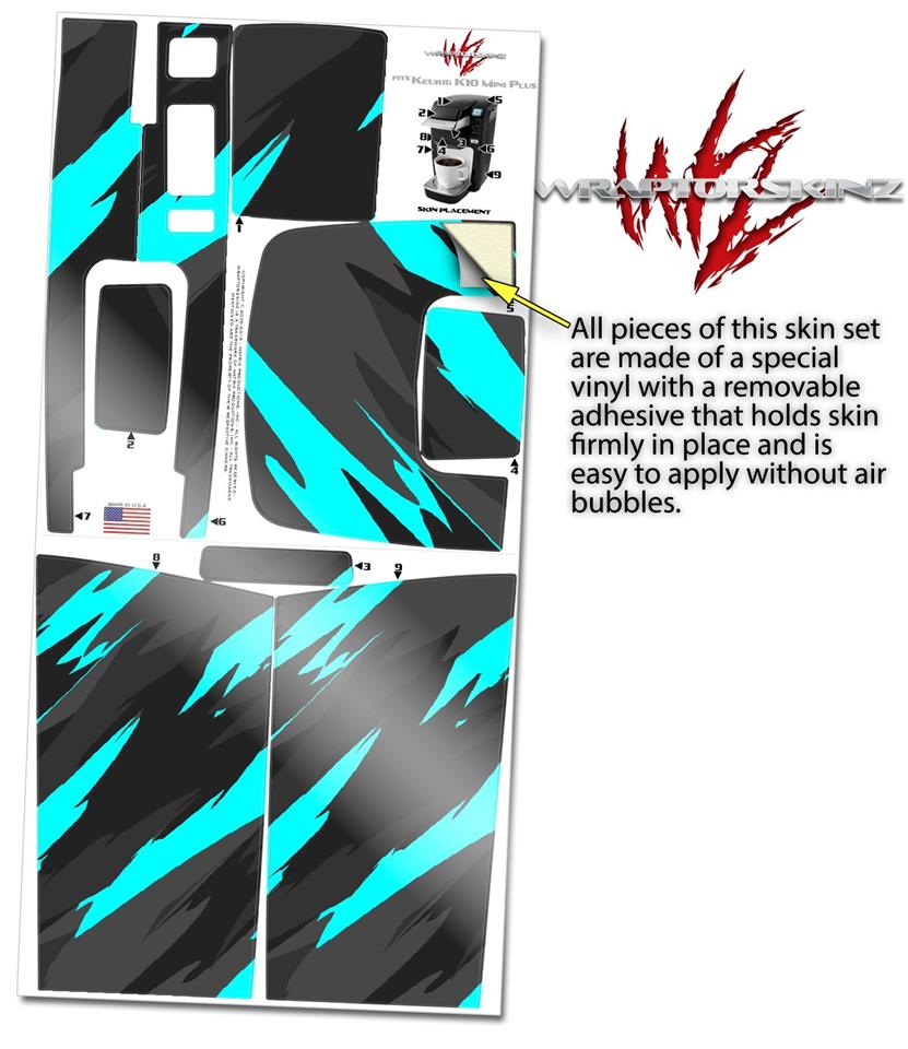 Decal Style Vinyl Skin compatible with Keurig K10 / K15 Mini Plus Coffee Makers Jagged Camo Neon Teal (KEURIG NOT INCLUDED)