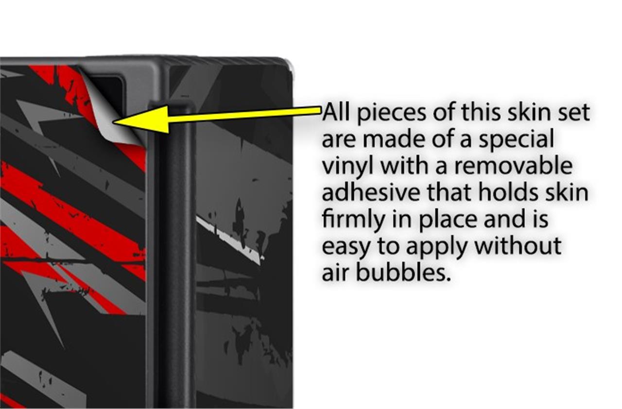 WraptorSkinz® skins are superb photo quality designs and vibrant colors printed with special Eco-Friendly, fade resistant inks. Our skins are self-adhering flexible vinyl skins that helps prevent scratches. Made of composite, multi-layered commercial grade materials. The bottom layer is made with a special removable adhesive that is easily positioned and applied without air bubbles. We print your design on the bottom layer then bond a professional grade laminate over the entire skin adding a glossy protective finish.