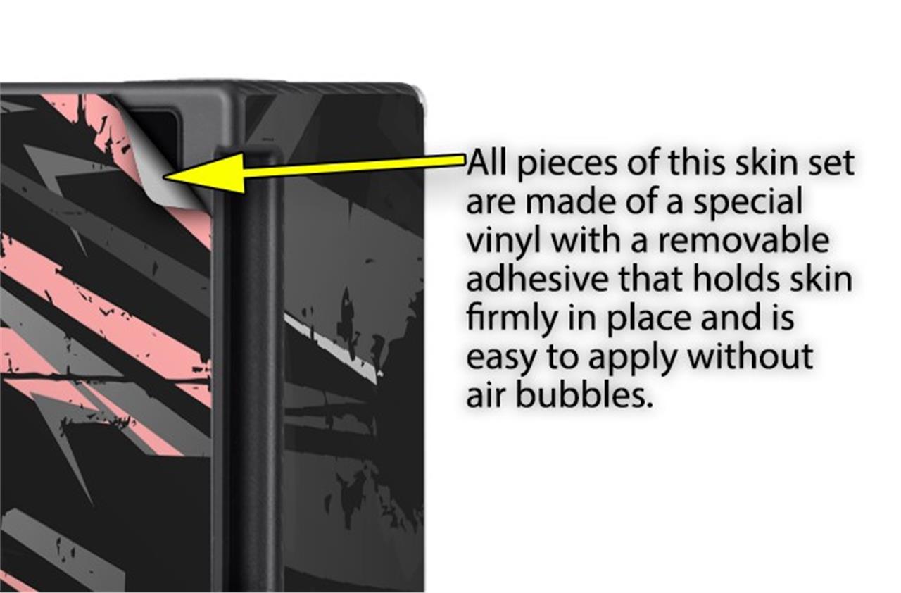 WraptorSkinz® skins are superb photo quality designs and vibrant colors printed with special Eco-Friendly, fade resistant inks. Our skins are self-adhering flexible vinyl skins that helps prevent scratches. Made of composite, multi-layered commercial grade materials. The bottom layer is made with a special removable adhesive that is easily positioned and applied without air bubbles. We print your design on the bottom layer then bond a professional grade laminate over the entire skin adding a glossy protective finish.