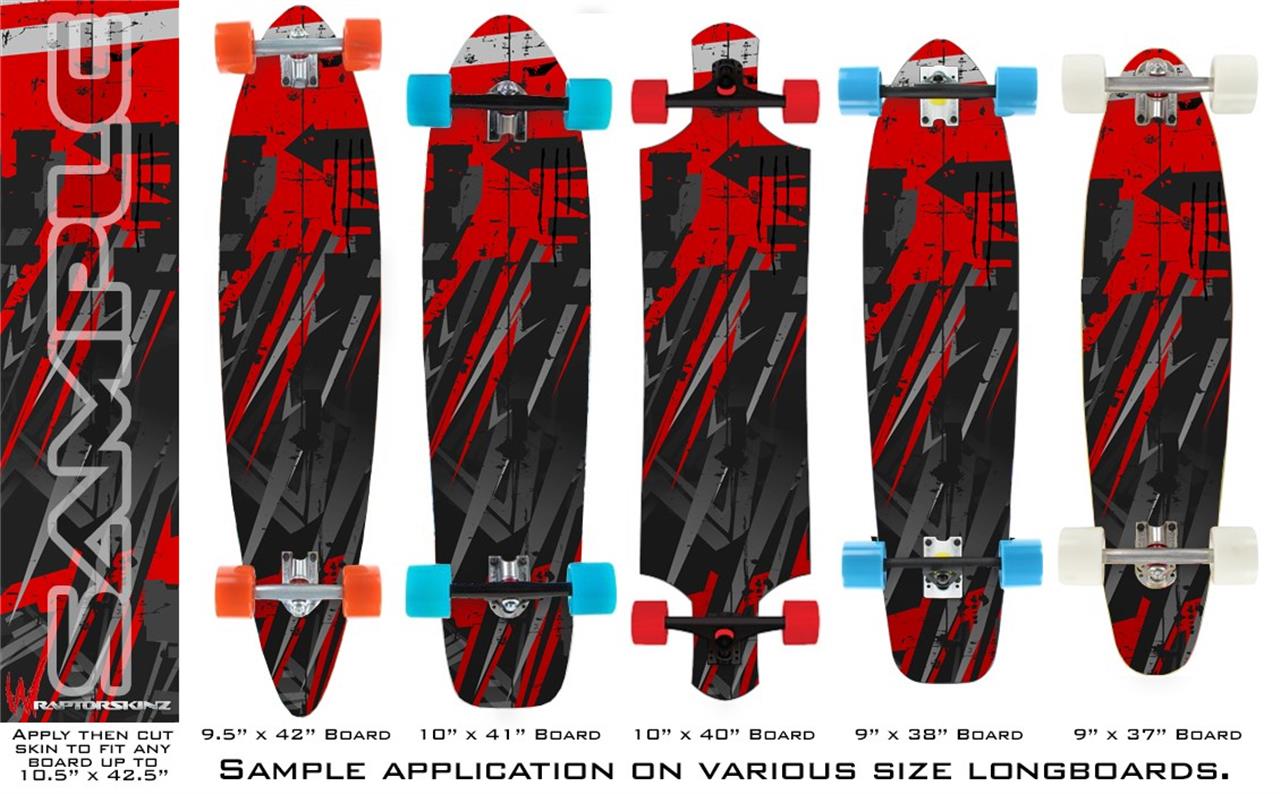 Our longboard skins are made so that one size fits boards up to 10” wide x 42” long. This means after applying the skin it you will trimming to fit you’re the shape of your board with a sharp utility knife.
