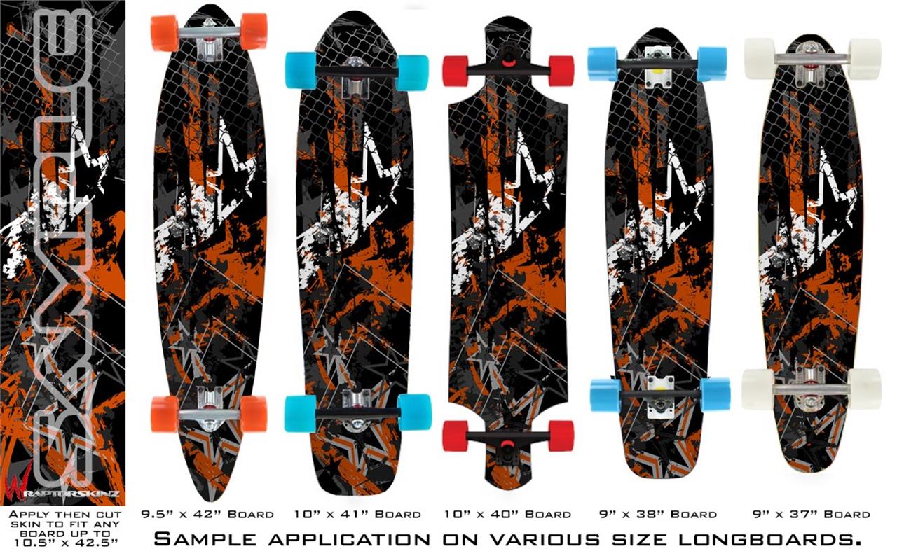 Our longboard skins are made so that one size fits boards up to 10” wide x 42” long. This means after applying the skin it you will trimming to fit you’re the shape of your board with a sharp utility knife.