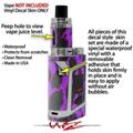 WraptorSkinz® skin wraps are printed using superb photo quality designs and vibrant colors printed with special fade resistant inks that last even in direct sun for years. WraptorSkinz are a composite of two layers of commercial grade materials. The bottom layer is a soft, flexible vinyl with a special removable adhesive that is easily positioned, applied without air bubbles. Next we print the bottom layer with UV protected, fade resistant inks that deliver superb photo quality designs in vibrant colors. Finally we bond a professional grade laminate over the entire skin adding a glossy protective finish. This product is not affiliated with or endorsed by the Smok brand.