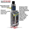 WraptorSkinz® skin wraps are printed using superb photo quality designs and vibrant colors printed with special fade resistant inks that last even in direct sun for years. WraptorSkinz are a composite of two layers of commercial grade materials. The bottom layer is a soft, flexible vinyl with a special removable adhesive that is easily positioned, applied without air bubbles. Next we print the bottom layer with UV protected, fade resistant inks that deliver superb photo quality designs in vibrant colors. Finally we bond a professional grade laminate over the entire skin adding a glossy protective finish. This product is not affiliated with or endorsed by the Smok brand.