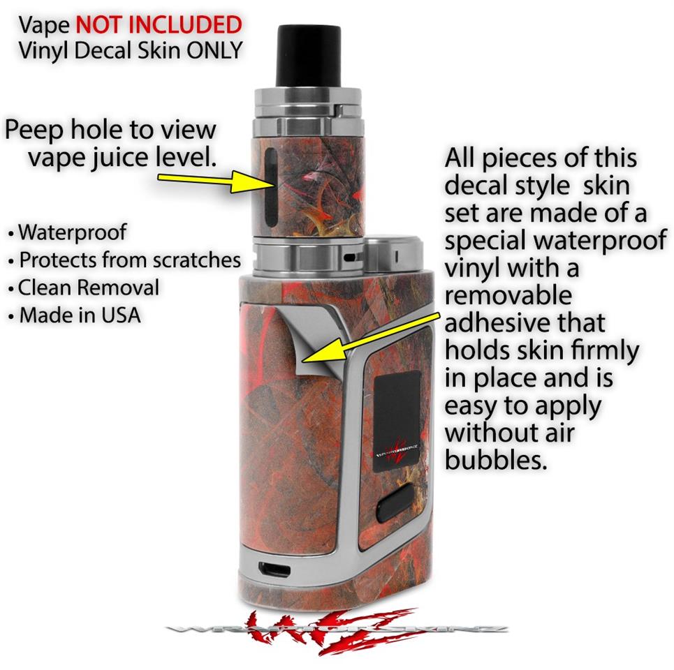WraptorSkinz® skin wraps are printed using superb photo quality designs and vibrant colors printed with special fade resistant inks that last even in direct sun for years. WraptorSkinz are a composite of two layers of commercial grade materials. The bottom layer is a soft, flexible vinyl with a special removable adhesive that is easily positioned, applied without air bubbles. Next we print the bottom layer with UV protected, fade resistant inks that deliver superb photo quality designs in vibrant colors. Finally we bond a professional grade laminate over the entire skin adding a glossy protective finish. This product is not affiliated with or endorsed by the Smok brand.