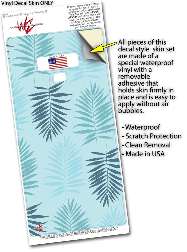 Decal style Skin Wrap compatible with Samsung Galaxy Note 9 Palms 01 Blue On Blue