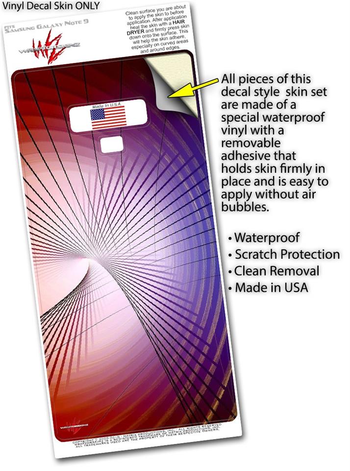 WraptorSkinz® skin wraps for the Samsung Galaxy Note 9 are printed using superb photo quality designs and vibrant colors printed with special fade resistant inks that last even in direct sun for years. WraptorSkinz are a composite of two layers of commercial grade materials. The bottom layer is a soft, flexible vinyl with a special removable adhesive that is easily positioned, applied without air bubbles. Next, we print the bottom layer with UV protected, fade resistant inks that deliver superb photo quality designs in vibrant colors. Finally, we bond a professional grade laminate over the entire Galaxy Note 9 skin adding a glossy protective finish. This product is not affiliated with or endorsed by Samsung.