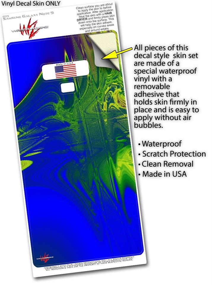 WraptorSkinz® skin wraps for the Samsung Galaxy Note 9 are printed using superb photo quality designs and vibrant colors printed with special fade resistant inks that last even in direct sun for years. WraptorSkinz are a composite of two layers of commercial grade materials. The bottom layer is a soft, flexible vinyl with a special removable adhesive that is easily positioned, applied without air bubbles. Next, we print the bottom layer with UV protected, fade resistant inks that deliver superb photo quality designs in vibrant colors. Finally, we bond a professional grade laminate over the entire Galaxy Note 9 skin adding a glossy protective finish. This product is not affiliated with or endorsed by Samsung.