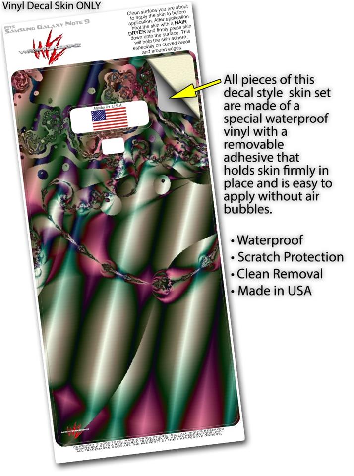 WraptorSkinz® skin wraps for the Samsung Galaxy Note 9 are printed using superb photo quality designs and vibrant colors printed with special fade resistant inks that last even in direct sun for years. WraptorSkinz are a composite of two layers of commercial grade materials. The bottom layer is a soft, flexible vinyl with a special removable adhesive that is easily positioned, applied without air bubbles. Next, we print the bottom layer with UV protected, fade resistant inks that deliver superb photo quality designs in vibrant colors. Finally, we bond a professional grade laminate over the entire Galaxy Note 9 skin adding a glossy protective finish. This product is not affiliated with or endorsed by Samsung.