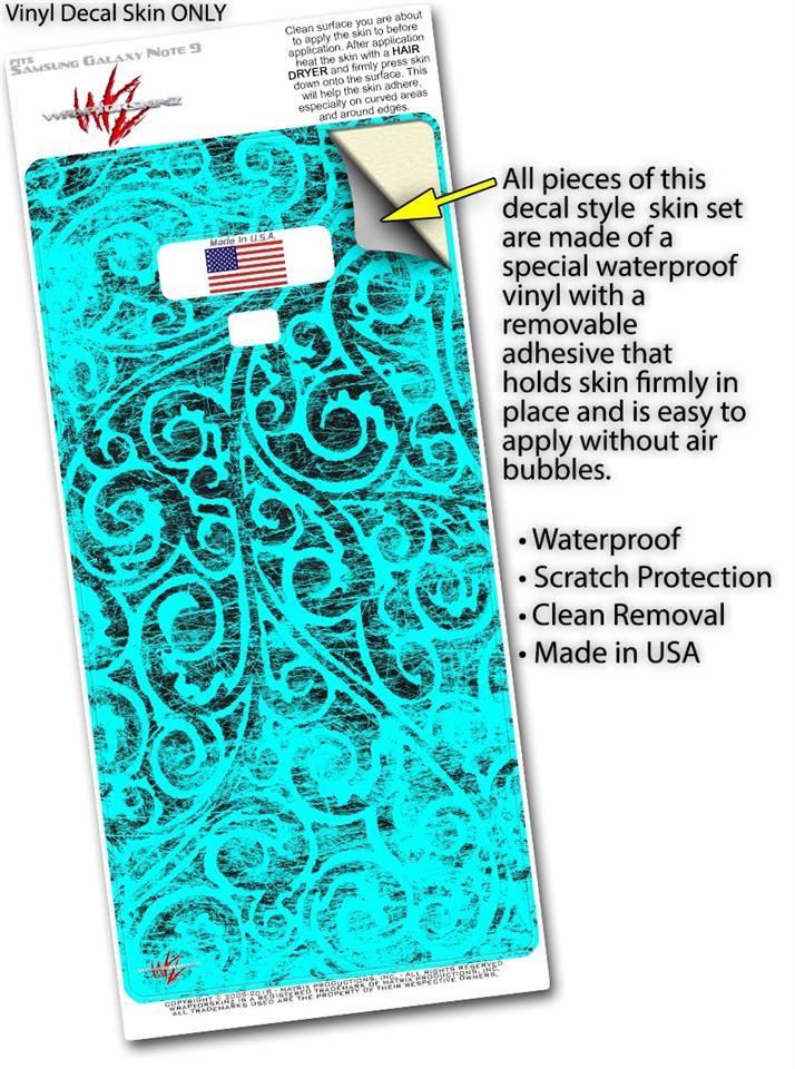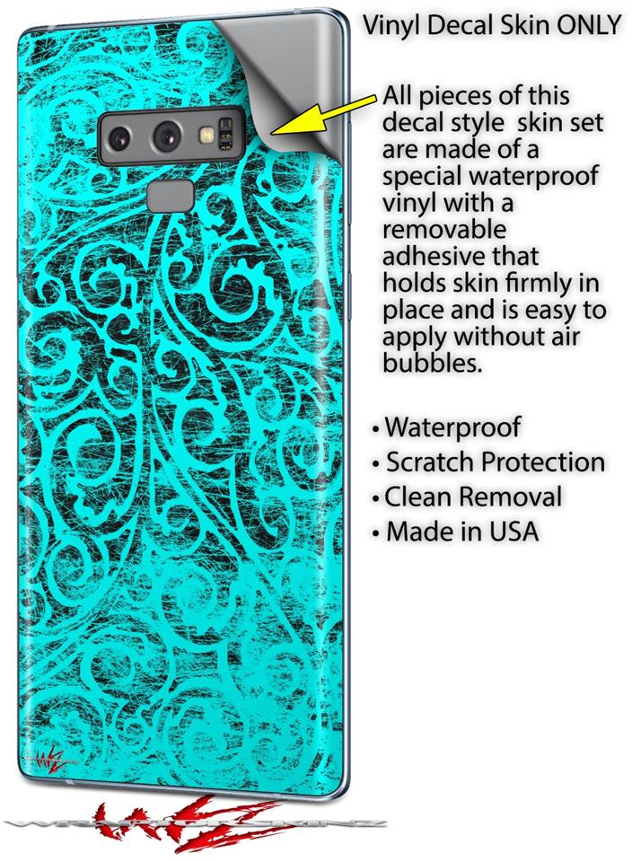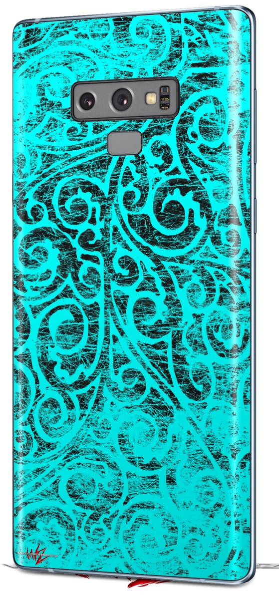 Decal style Skin Wrap compatible with Samsung Galaxy Note 9 Folder Doodles Neon Teal